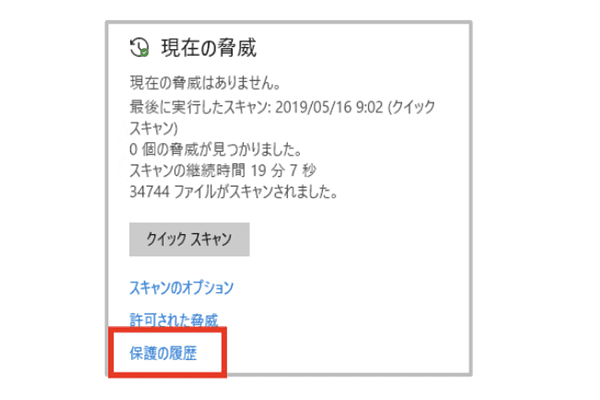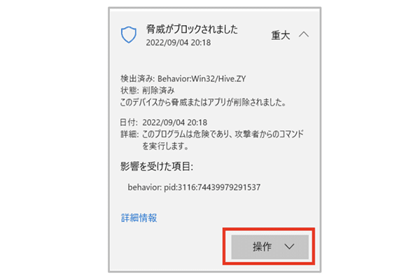 「脅威がブロックされました」をクリックし、「操作」をクリックして「許可」に変更します。