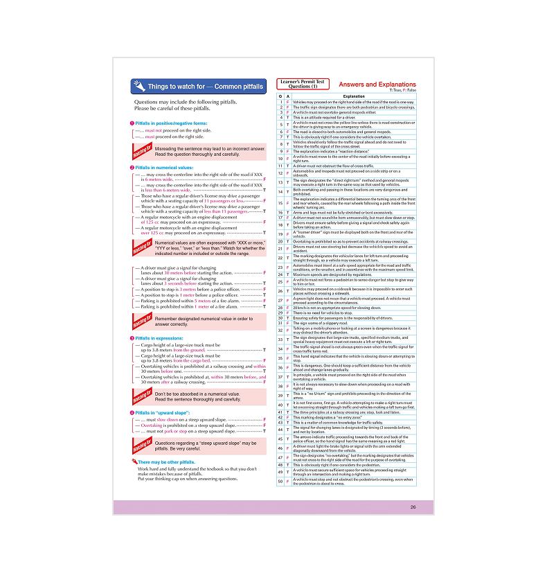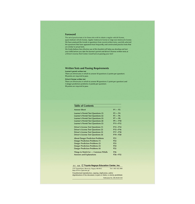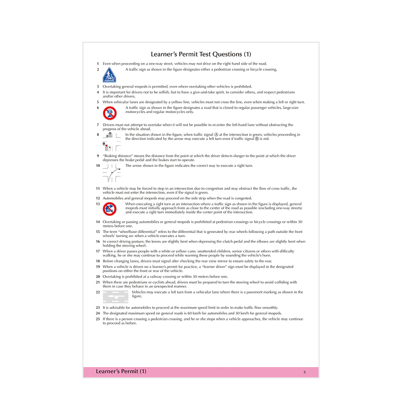 - 日本語版の問題集(仮免本免問題集)と同一ページ、同一レイアウト