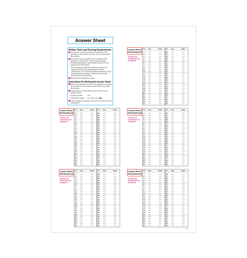 This workbook features practice questions formatted to match the actual learner’s permit and regular license written tests.