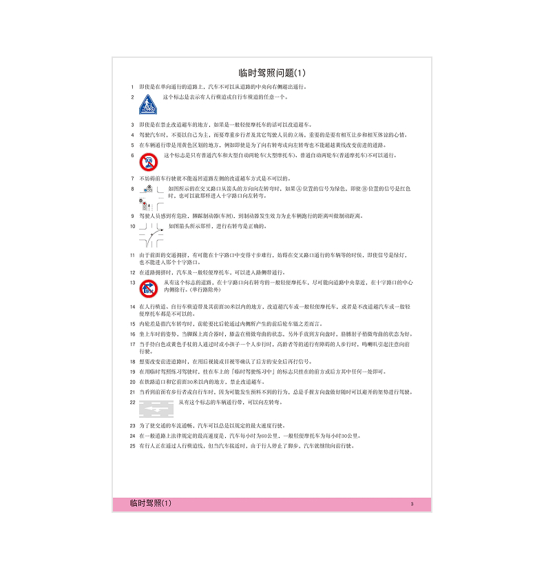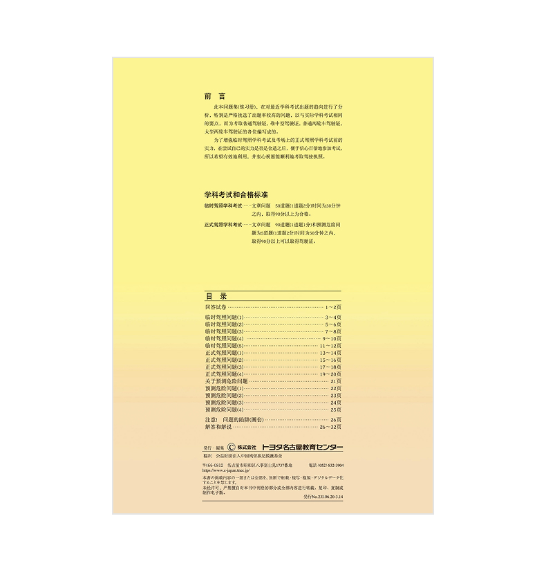 本习题集的练习题格式与实际的临时驾照及正式驾照学科考试一致。