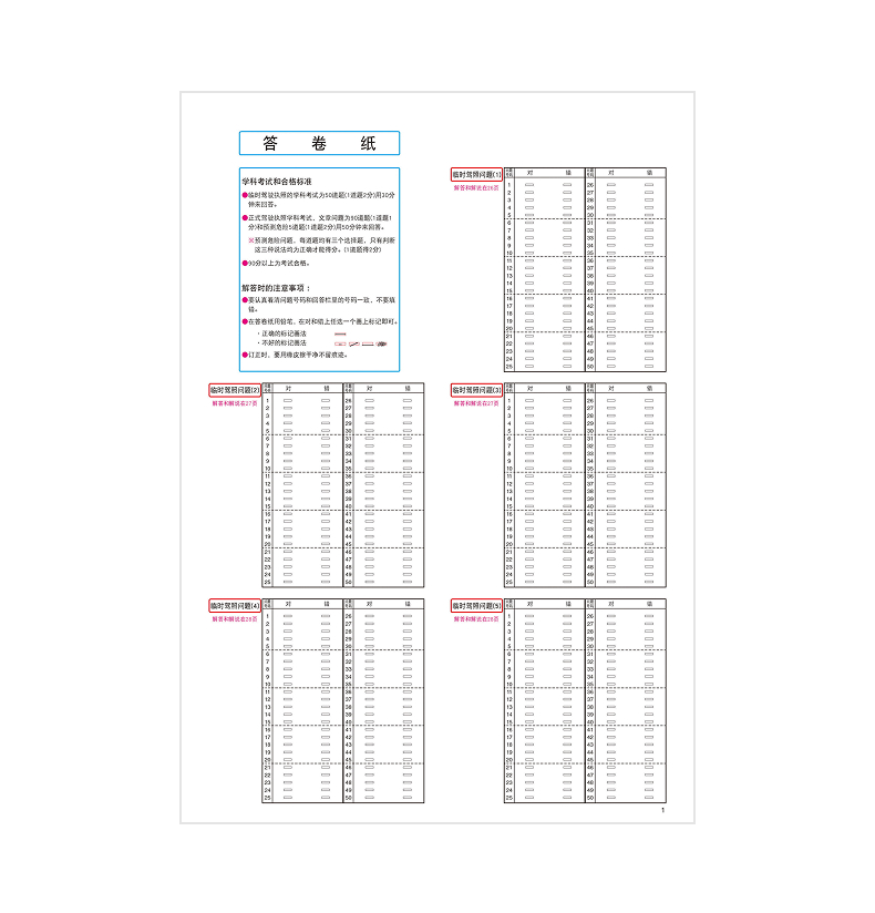 通过填写附带的答题卡,您可以进行模拟真实考试环境的模拟考试。