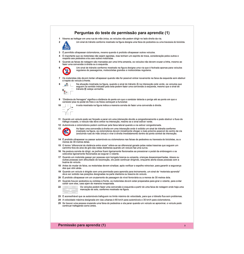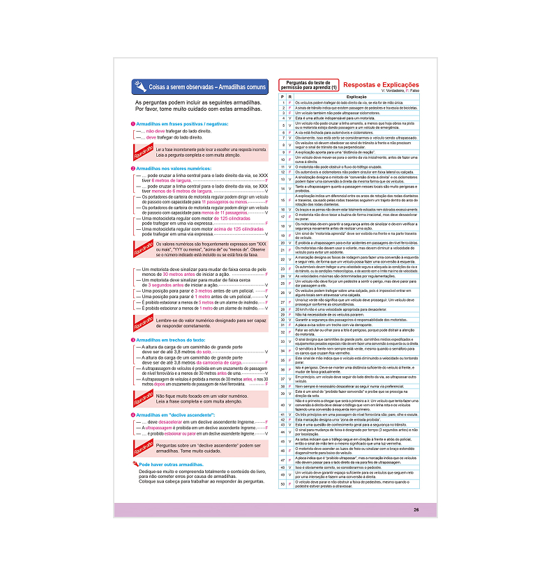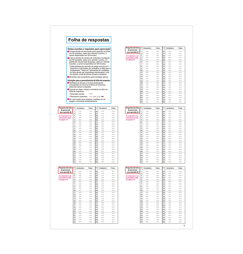 - Inclui 5 conjuntos de questões para a carteira provisória (50 questões cada) e 4 conjuntos de questões para a carteira definitiva (95 questões cada).