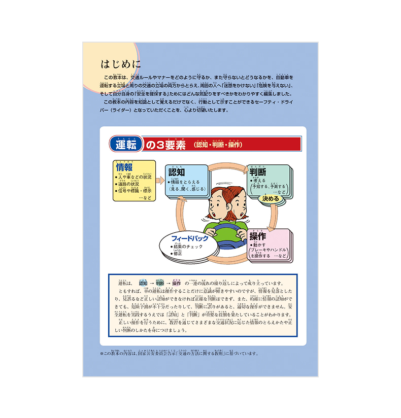 運転免許の学科試験に必要な交通ルールやマナー、安全運転のための知識を学ぶ教本です。
